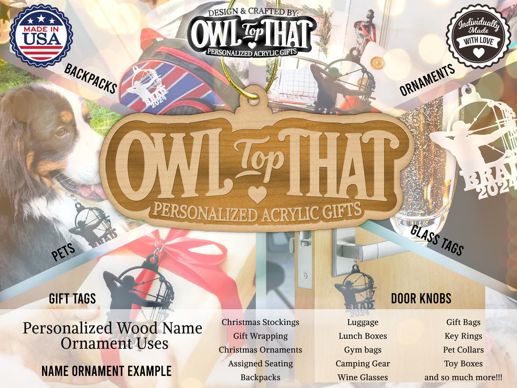 OWLTOPTHAT@GMAIL.COMWizard School Ornament Engraved Custom Name Tag Wood Ornament - Personalized Name & Date - Gift Tags, Event Markers, Holiday Ornaments, and More