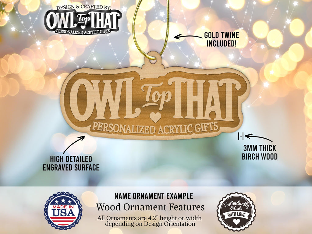 This listing is for one of our unique and adorable Engraved Birch Wood Ornaments. Personally engraved name tag ornaments that provide a variety of uses. Our name tag ornaments are an excellent way to add that special touch of personal flair to any occasion.