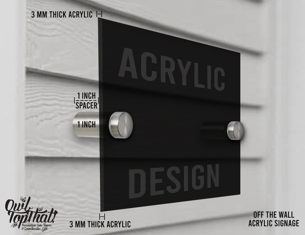 This listing is for our unique off the wall acrylic signage. Our Custom Standoff Acrylic Signage are a great way to add that custom flair finishing touch to any home or office.